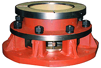 This combination radial, carrier bearing and packing gland is integrated into the steering gear tiller, and provides a very compact and minimum maintenance arrangement. Side loads from the rudder, and weight of the rudder and rudder stock, are taken up by large area self-lubricating proprietary synthetic bearing liners. On installation, and occasionally thereafter, a small amount of greasing is sufficient to provide low friction and minimal wear. This unique bearing material has been tested in many installations for over 14 years, with no bearing replacement necessary so far. Eventual replacement is very easy, as the bearing liner is easily removed and replaced without the use of heavy hydraulic presses or jacks.